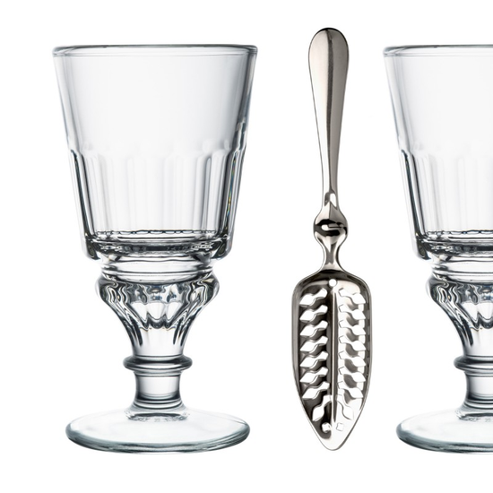 czystej formie z finezyjną nóżką. Zestaw składa się z dwóch klasycznych kieliszków do absyntu, każdy o pojemności 300 ml. W skład zestawu wchodzi również łyżeczka, która jest nieodzownym elementem do spożywania tego wyjątkowego francuskiego trunku. Mogą służyć również do serwowania białego, jak i czerwonego wina oraz wody, soków i zimnych napojów.