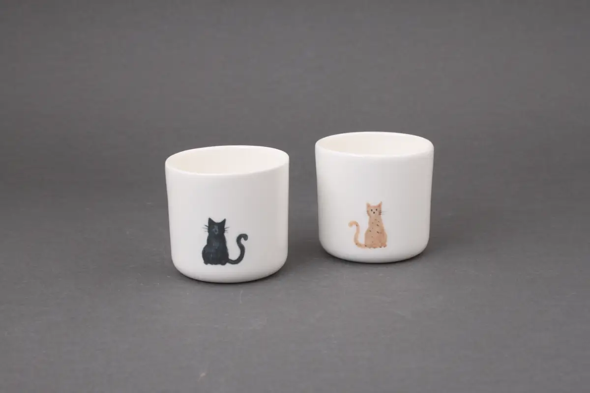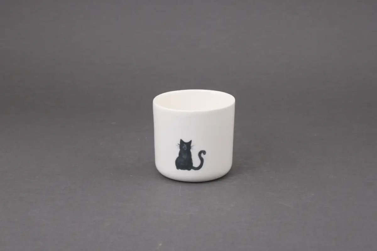 Kubek do kawy bez ucha o pojemności 160 ml z porcelany. Dla tych, co nie boją się czarnego kota, na każdym kubku wizerunek czarnego kota