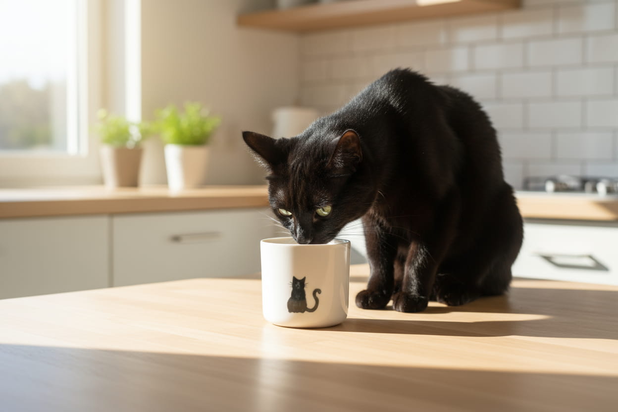 Czarny kot Czynie Ceramics kubek bez ucha