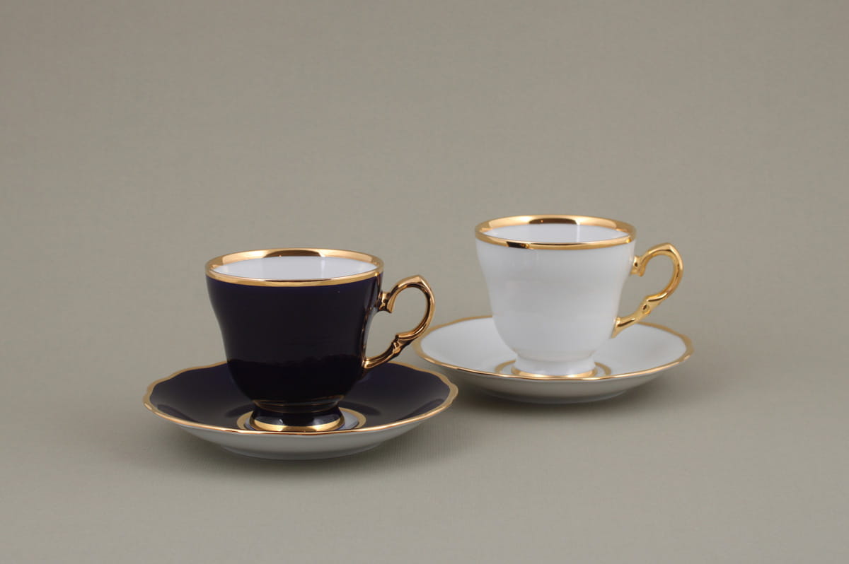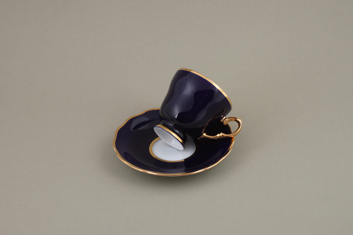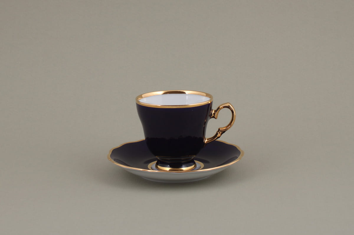 Klasyczna filiżanka do kawy - w głębokim granatowym kolorze i malowana złotem. Wyjątkowy pomysł na prezent dla miłośników kawy w porcelanowej filiżance