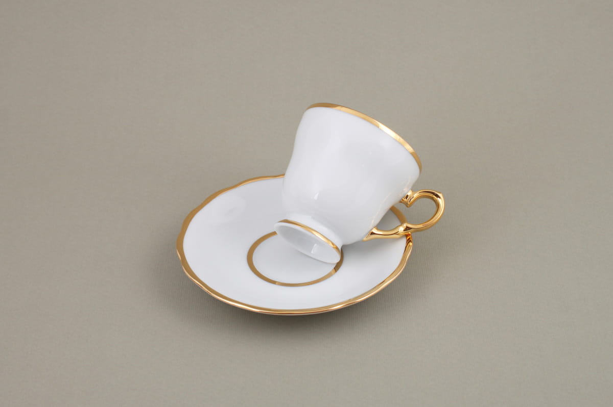 - Filiżanka Dzień polarny - jest idealnie biała, ze złotym zdobienie. Złote są również sygnatury fabryki