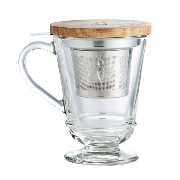 Piękny prezent dla miłośników herbaty. Szklanka ze szkła prasowanego w komplecie z zaparzaczem i bambusową pokrywką. Zapakowane w oryginalne pudełko francuskiej huty La Rochere.