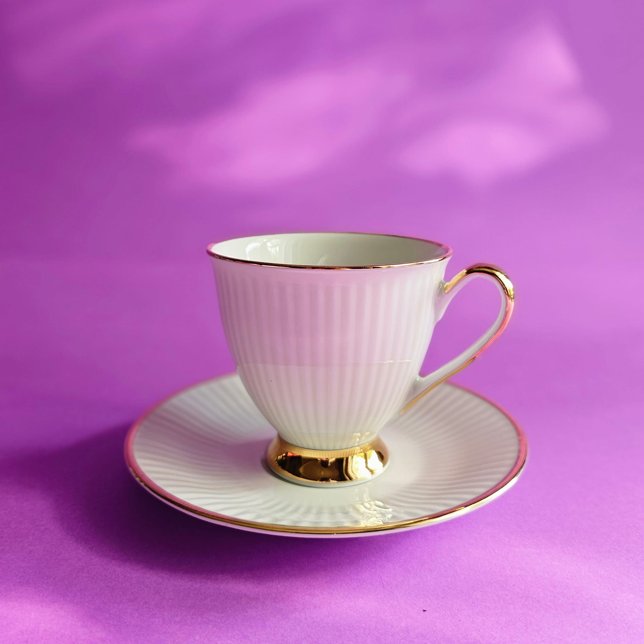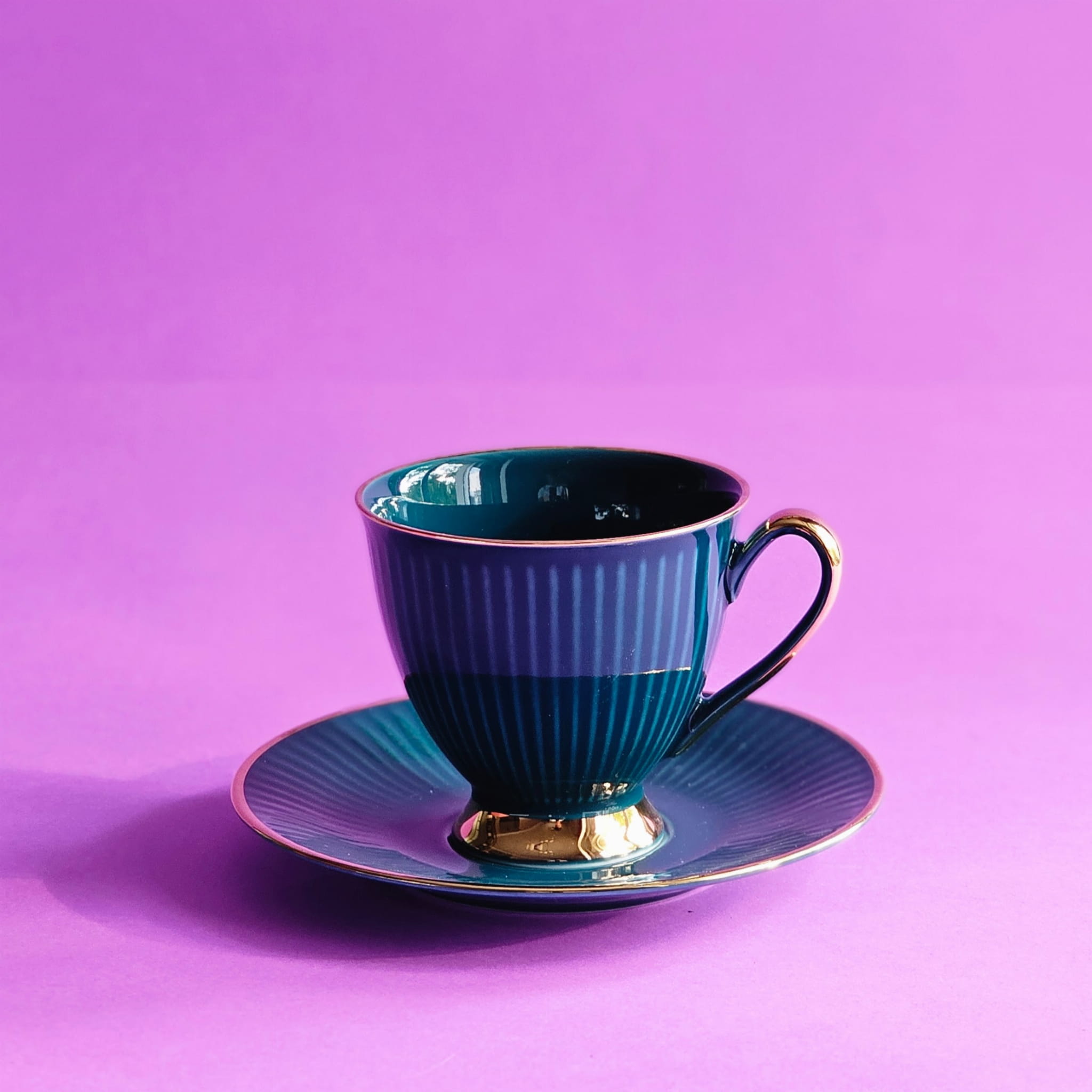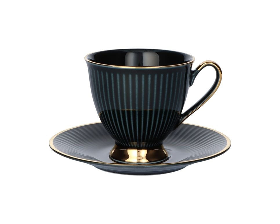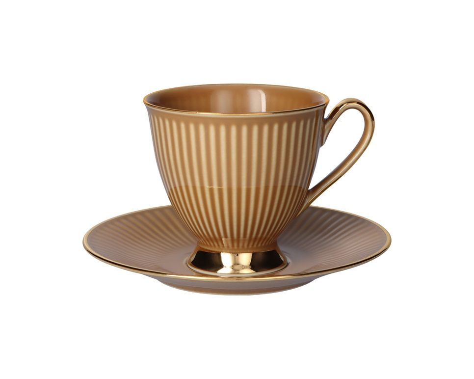 Kolorowe filiżanki do kawy i herbaty ze złotym zdobieniem, z chodzieskiej kolekcji Dalia. Eleganckie filiżanki pakowane są w pojedynczo w pudełko prezentowe z sygnaturą Chodzież. Idealny pomysł na prezent z Polski.