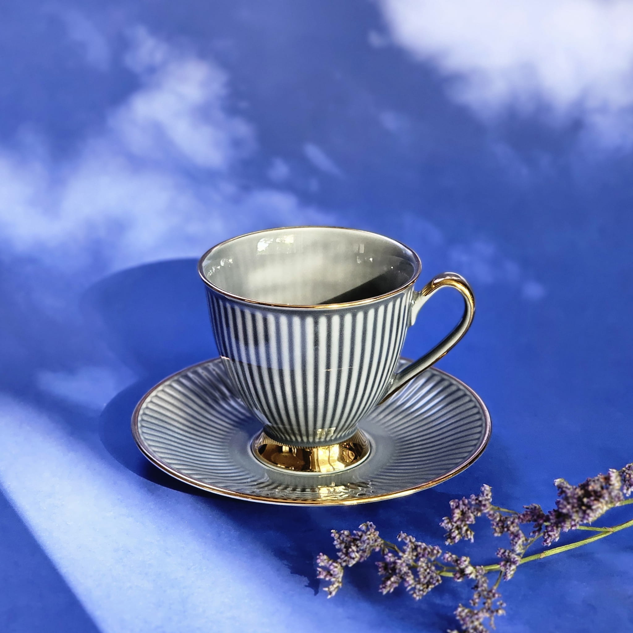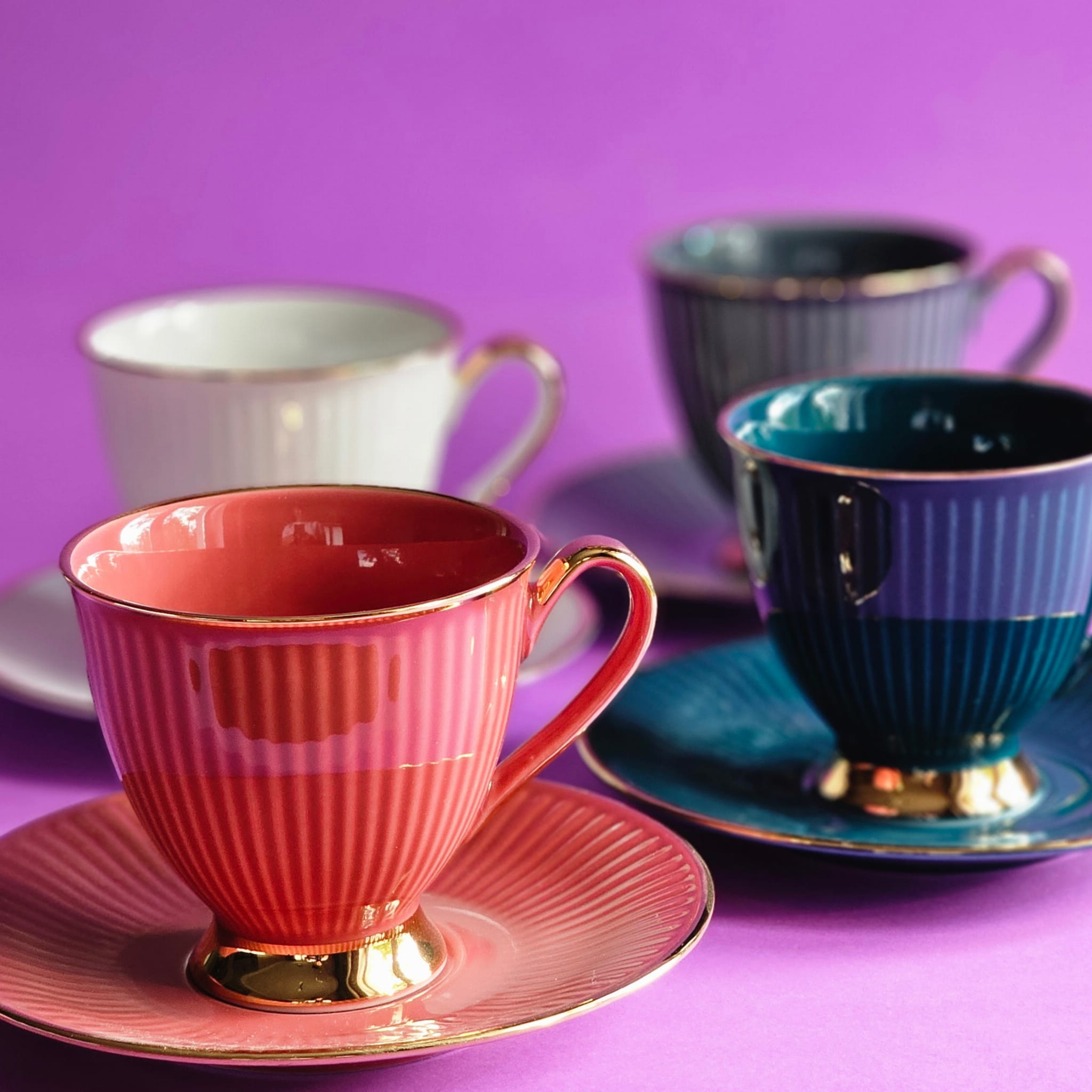 Intensywne kolory filiżanek noszą nazwy szlachetnych kamieni - perły, koralu, szafiru, turkusu, obsydianu.